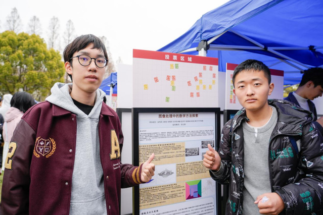 在海报摊位之外,场地外围设有“复芏计划”特色项目介绍区,展示着学校对本科生科研的持续支持。第一届“悟”阶段的高票课题也在现场展出,成为学弟学妹们的参考范本。还有“数院大神”“益创星球”等学生社团的摊位,吸引着往来同学。