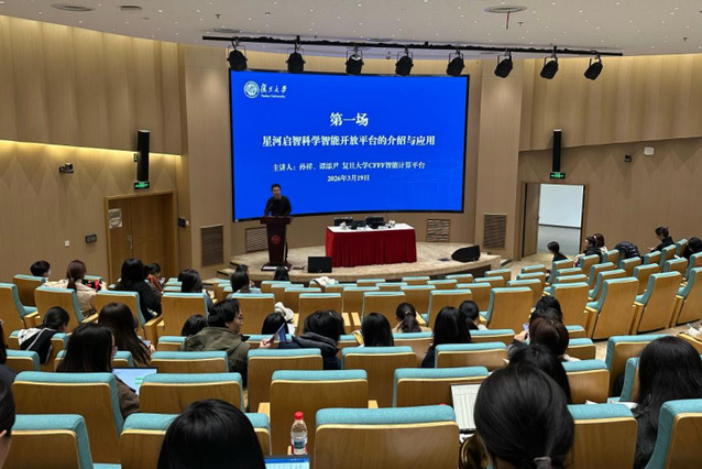3月19日上午,辅导员队伍专题培训在邯郸校区逸夫楼一楼报告厅举行。本次培训以“星河启智科学智能开放平台的介绍与应用”为主题,邀请上海科学智能研究院、复旦大学人工智能创新与产业研究院、CFFF智能计算平台的孙祥、谭添尹老师担任主讲,各院系专职辅导员参加
