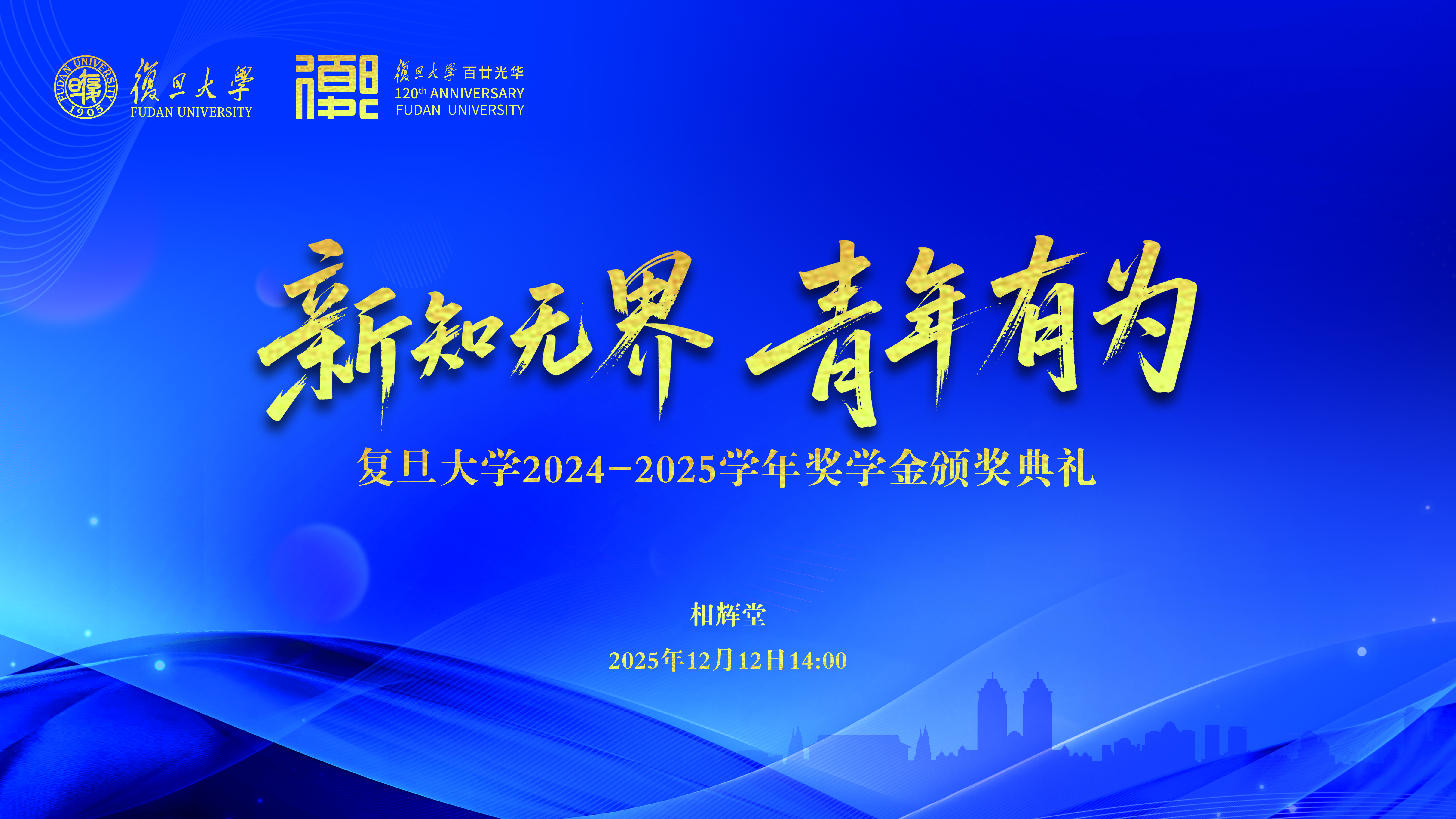 2025年12月12日下午“新知无界 青年有为”复旦大学2024-2025学年奖学金颁奖典礼在相辉堂举行。